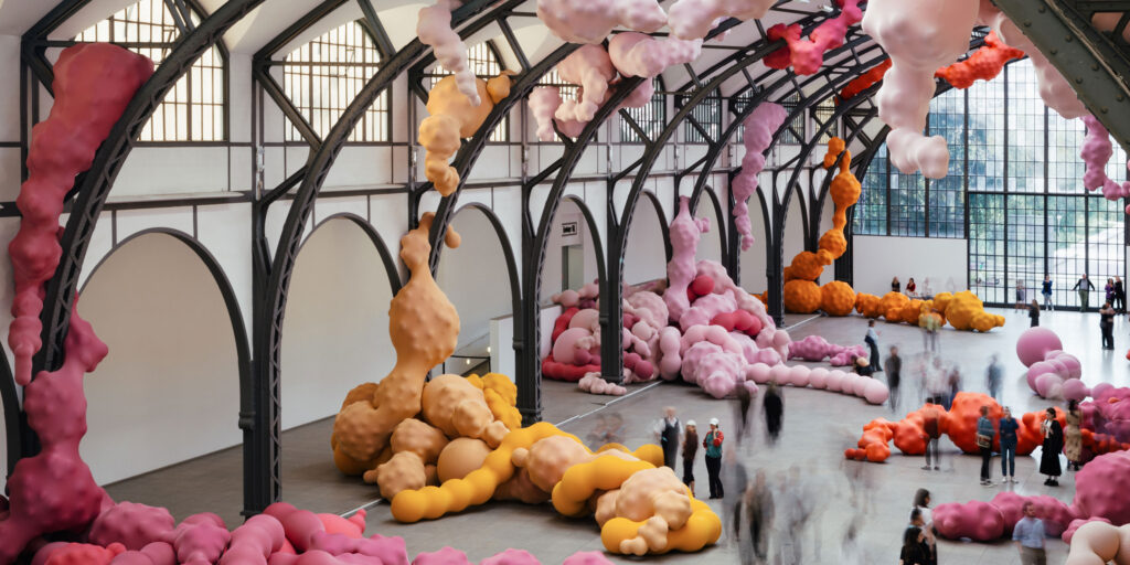 Calm motion fragments clash and reconfigure, hinting at rupture and emergence. This marks a shift towards a more experimental and forward-looking energy, presenting the Biennale as a space of transformation and speculative play.