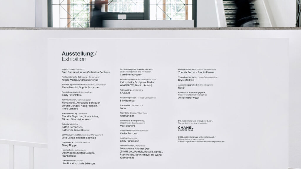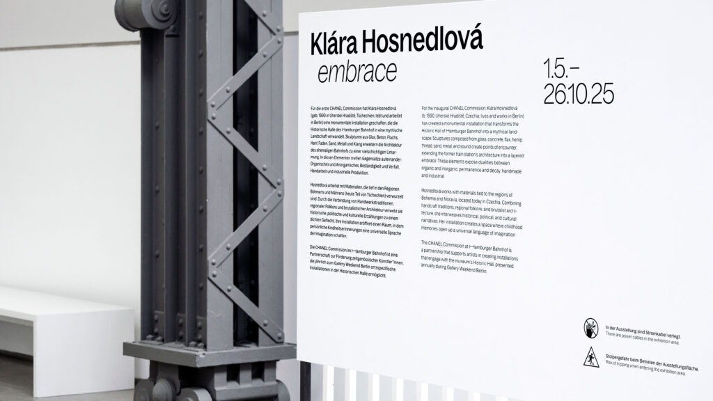 Our designs are conceived as an integral part of the curatorial narrative. They structure the space, provide orientation, and enhance the communication of content, always responding sensitively to the architecture, exhibition concept, and audience. The result is a series of visual systems that evolve with each exhibition, animating the Hamburger Bahnhof as a dynamic site for contemporary art.